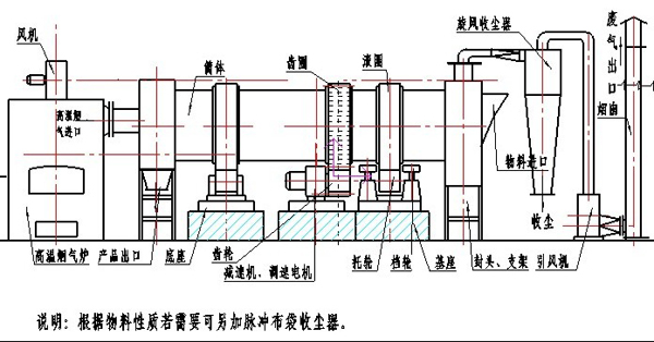 機械結(jié)構(gòu)及工作原理 直熱式回轉(zhuǎn)滾筒干燥機主要由熱源、上料機、進(jìn)料機、回轉(zhuǎn)滾筒、出料機、引風(fēng)機、卸料器和配電柜構(gòu)成。脫水后的濕物料進(jìn)入干燥機后,在滾筒內(nèi)均布的抄板的翻動下,物料在干燥機內(nèi)均勻分散與熱空氣充分接觸,加快了干燥傳熱﹑傳質(zhì)。在干燥過程中,物料在帶有傾斜度的抄板和熱氣質(zhì)的作用下,至干燥機另一段卸料器排出成品。適合于滑石粉的烘干。 主要特點 1.轉(zhuǎn)筒干燥機械化程度高,生產(chǎn)能力較大,可連續(xù)運轉(zhuǎn)。 2.結(jié)構(gòu)優(yōu)良﹑簡單﹑物料通過筒體阻力運行平穩(wěn)﹑操作方便。 3.故障少﹑維護費用低﹑功耗低。 4.適用范圍廣﹑產(chǎn)品干燥的均勻性好。